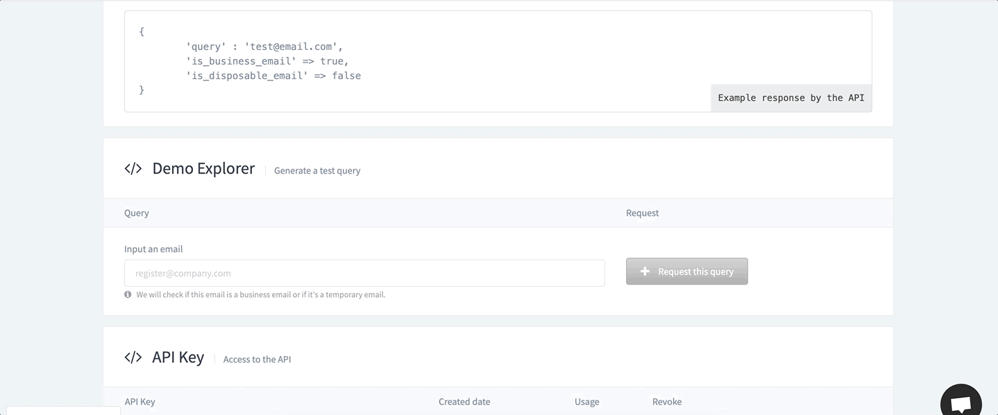 Easily integrate our email checker into any signup, lead gen, or onboarding process with a single API call.